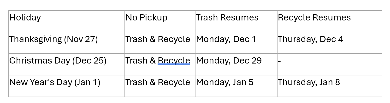 đď¸ Holiday Trash & Recycling Schedule Update from Best Trash